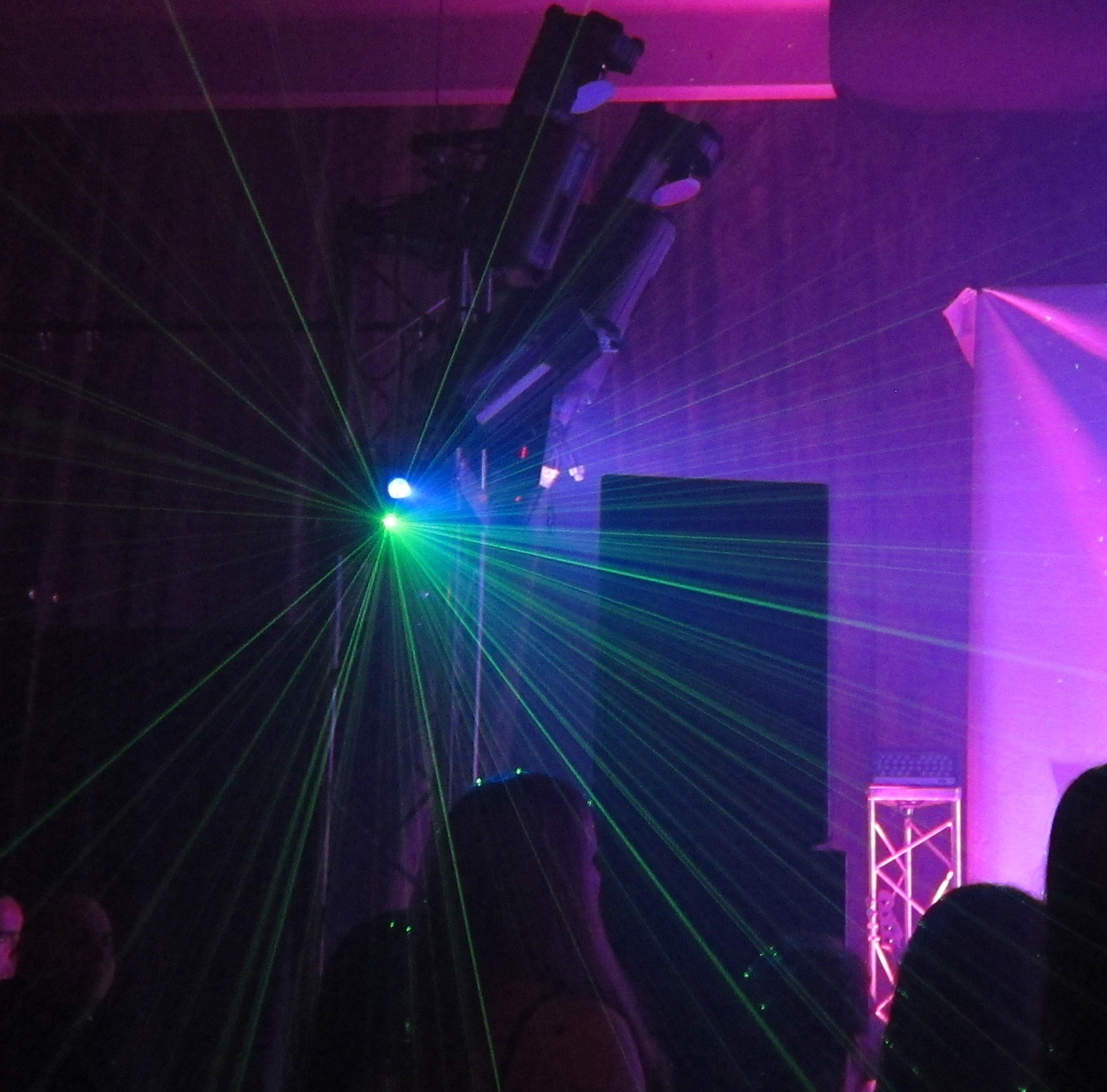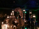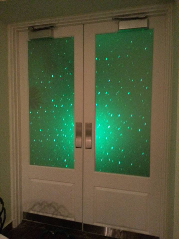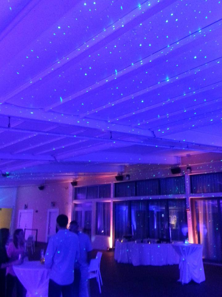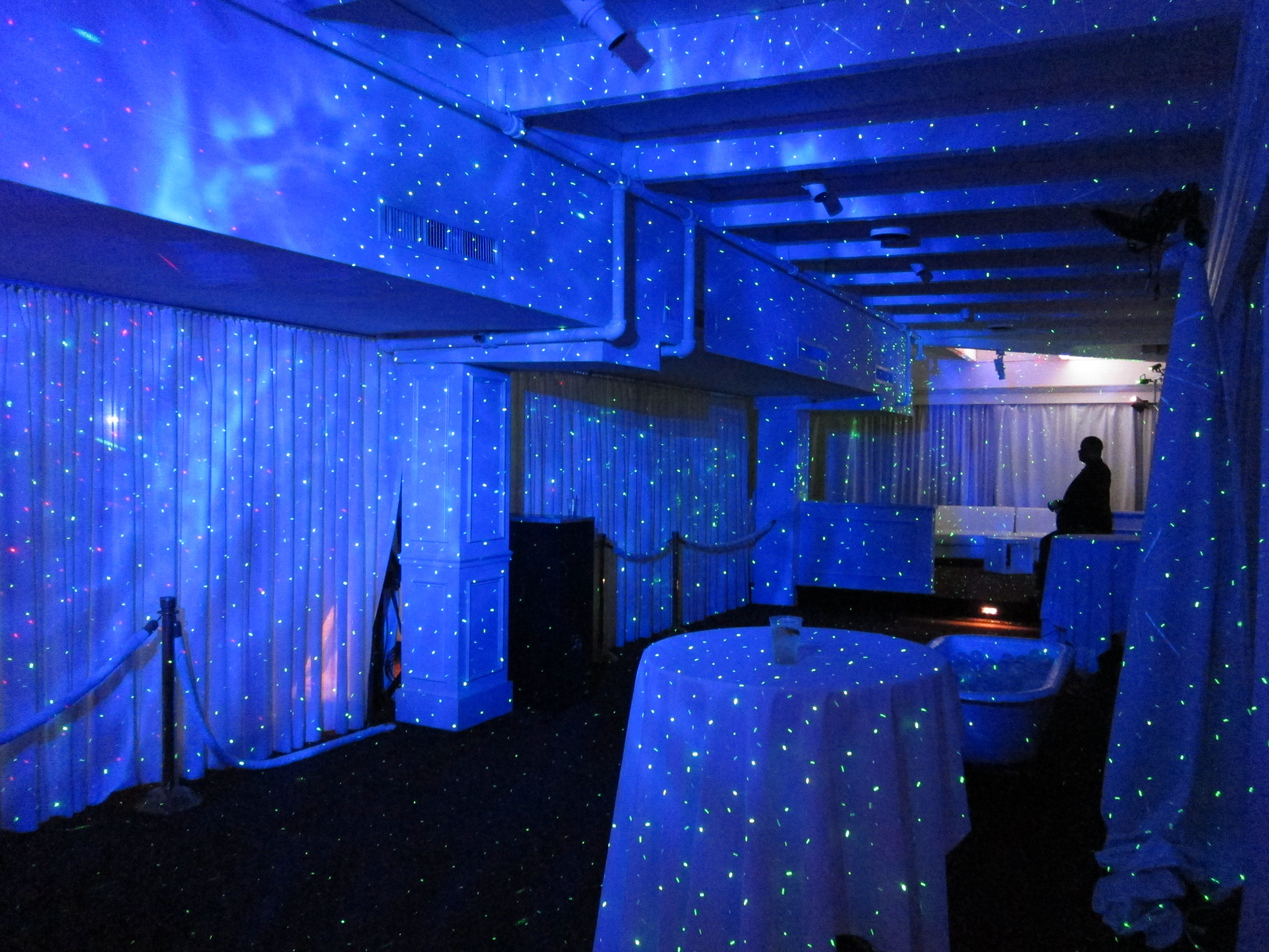 Bliss lighting creates thousands of slowly moving, brilliant green, or blue blue laser beams and dots that glide in different directions across the walls, ceiling, and floor. The Bliss Lights look great indoors on ceilings and walls and even more elegant on ceilings only. We also like to use them outdoors/indoor on small palm trees. They produce a shimmering like shiny glitter effect that will be quite a conservation piece at your event no matter what it is. The bliss light can also double as a laser beam light for kids parties, Quinces, Mitzvahs when used in conjunction with a thin, safe, non toxic dry mist that flows through the air which we can also provide you with called a hazer.